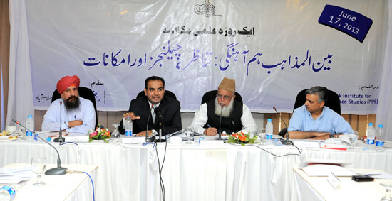 Diversity is the Will of God and we should accept that. All religions preach similar truths and virtues, which along with shared cultural and social values can be built upon to enhance interfaith harmony in Pakistan. Interfaith dialogue and harmony are possible only on the basis of equality, respect and acceptance. We should revisit the Madina Charter to seek solutions to existing interfaith problems in Pakistan. These were some of the points of consensus reached among scholars and leaders of different faiths in Pakistan who participated in a one-day national seminar on “Interfaith Harmony in Pakistan: Perspective, Challenges and Opportunities,” organized by Pak Institute for Peace Studies in Islamabad on June 17, 2013.