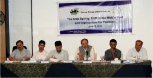 uphold the dignity of the common people. Because of Pakistan’s traditional links with the Middle East, events taking place in that region have considerable influence on Pakistan, which has prompted some analysts to express concern about the implications of the Arab spring for Pakistan. There has not been a similar uprising in Pakistan despite the country sharing with the Arab spring countries challenges such as corruption, dictatorial regimes or nominally democratic and unresponsive governments, internal socio-political turmoil and an aggravated security situation. These observations were made by speakers at a focused group discussion titled “The Arab Spring: Shift in the Middle East and Implications for Pakistan”. The discussion was organized by Pak Institute for Peace Studies (PIPS) and Khudi Pakistan in Islamabad on June 8, 2012. Ayaz Wazir, a former Pakistani ambassador, chaired the discussion. The panelists were Ahsan Kamal, a lecturer at National Institute of Pakistan Studies, Quaid-i-Azam University, Islamabad; Dr. Khadim Hussain, director Bacha Khan Educational Foundation, Peshawar; and Air Commodore (Retd) Khalid Iqbal from Islamabad Policy Research Institute (IPRI). Civil society activists, journalists, and students from leading universities attended the discussion in large numbers.
