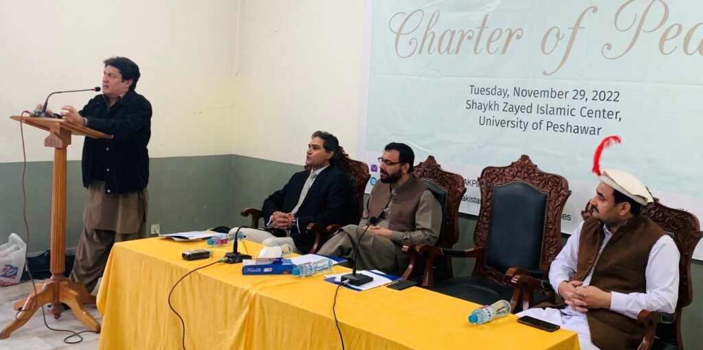 Pak Institute for Peace Studies (PIPS) launched its “Charter of Peace” at a ceremony held on November 29, 2022 at the Shaykh Zayed Islamic Centre in University of Peshawar.The document of Charter of Peace (CoP) has been prepared after holding consultations with multiple stakeholders for countering terrorism and extremism in the country through soft approaches.